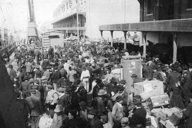 Antwerp was the exit point for people from all over Europe — especially Germany and areas to its east. Jews fleeing pogroms in Tsarist Russia and later Nazi persecution in Germany — among them Irving Berlin, Golda Meir, and Albert Einstein — accounted for at least a quarter of the Red Star Line's passengers taken across the Atlantic. The 10-day steamer journey transported cargo, luxury travelers, and "steerage-class" peasants alike. Before boarding, emigrants underwent humiliating health exams and nervously waited while clerks processed their paperwork.